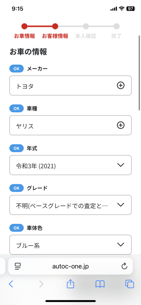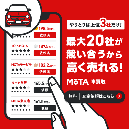 このMOTAは、自分の車を簡単入力すると、中古車センター同士で競ってくれ、上位3位から連絡がくる、とても便利なサービスです。