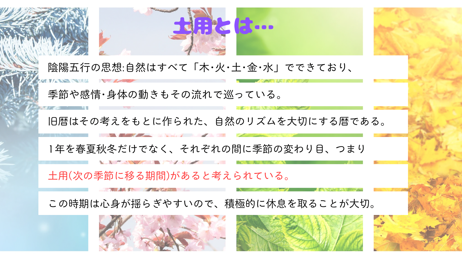 土用を活用し、体調管理に役立ててくださると幸いです。
