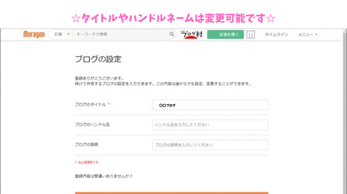 2. ブログのタイトルやハンドル名(ブログに表示される名前)を入力しよう