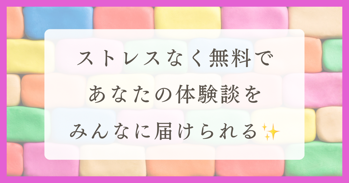 自分の体験談を、何かの形で伝えたい・・・。しかし、SNSだと無駄な情報が多く、悪評などに足を取られて不快な思いをしませんか?
